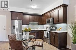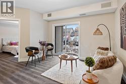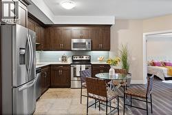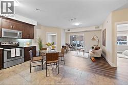 Welcome to Rivertown Terrace, a signature Valente Development Corporation community in the heart of East Windsor/Riverside. This inviting 2-bed, 2-bath condo blends comfort, style, and convenience with a bright open-concept layout, 9ft ceilings, and a spacious private balcony. The gourmet kitchen features stainless steel appliances, recessed shaker-style cabinetry, and a large breakfast peninsula perfect for everyday dining. The primary suite offers a generous closet and direct access to a well-appointed bathroom. Additional highlights include in-suite laundry, a roomy utility area with extra storage, and thoughtful upgrades throughout. Just steps from parks, restaurants, shops, and the waterfront-enjoy modern, low-maintenance living at its finest. (id:27)