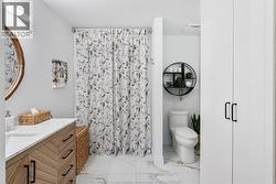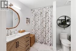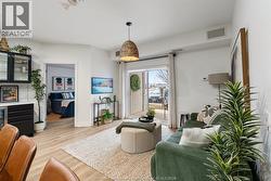 This beautifully renovated main-floor condo delivers refined living with exceptional attention to detail throughout, set in a highly desirable area of Windsor’s east end. Offering 2 spacious bedrooms and 2 elegant baths, including a stunning updated en suite, every inch of this home has been thoughtfully elevated. The designer kitchen features premium appliances, upgraded lighting and sleek finishes that set the tone for the entire space. Enjoy the convenience of a walk-out patio with an added ramp—ideal for mobility needs or effortless grocery and vehicle access. This 10-year-young building has been fully modernized, while this suite stands apart with upgrades including new flooring throughout, upgraded vanities and faucets, stylish light fixtures and pot lights, custom window treatments, tankless hot water tank, and a laundry tub with upgraded faucet. A rare offering of luxury, comfort and convenience in one of the building’s finest residences. (id:27)