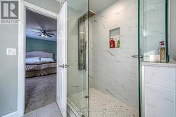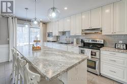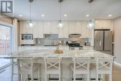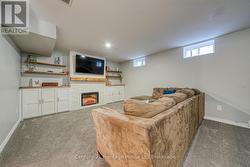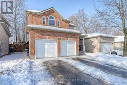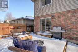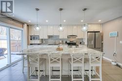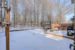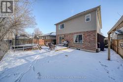 Welcome to this beautifully upgraded two-storey home in the desirable South Woodstock community, situated on a private lot with no rear neighbours. This spacious family home offers 4 bedrooms, 3.5 bathrooms, a double-car attached garage, and a fully finished basement. The striking brick exterior is complemented by a double-wide freshly sealed driveway (2022) and inviting front porch. Inside, enjoy a tiled foyer with garage access and powder room, hardwood floors and custom wainscoting in the formal dining room, and a living room with coffered ceilings open to the stunning kitchen featuring a large island, pendant lighting, modern countertops, chic cabinetry, and an updated walk-in pantry (2022). Patio doors lead to a new deck (2021) and fully fenced private yard. Upstairs, the primary suite features his-and-hers closets (2020) and a luxurious ensuite with glass shower, quartz countertop, and corner jetted tub. One of the additional bedrooms features a fireplace installed in 2024 and new windows added in 2025. Three additional bedrooms and a full bathroom complete the second level. The finished basement includes a rec room with fireplace and custom built-ins, bonus room with closet, laundry, 3-piece bath, and a custom kids' playhouse. Additional updates include a new A/C unit (2022). Close to schools, community complex, hospital, and with quick highway access-this home has it all (id:27)