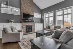 Welcome to 209 Boot Hill Rd, nestled in the sought-after Boot Hill enclave in Woodstock. This impressive 2-storey home offers 3 bedrooms, 3 bathrooms, and an attached 3-car garage. Step inside to an open-concept main floor filled with natural light, highlighted by a stunning cathedral ceiling and a gorgeous gas fireplace - perfect for relaxing or entertaining. The layout also includes a formal dining room, ideal for hosting family dinners and holidays. Upstairs, the primary retreat features a large walk-in closet and a luxurious spa-like ensuite. Two additional bedrooms complete the second level, along with a handy laundry chute to make everyday life a little easier. The bright walk-out basement offers endless potential with high ceilings, a cold cellar, and a bathroom rough-in already in place - create extra living space, a home gym, or even in-law suite potential tailored to your family's needs.Enjoy smart, modern comfort throughout with a smart thermostat, Leviton smart switches, whole-home surge protection, and CAT5 wiring to the living area and second floor. Custom programmable Hunter Douglas window coverings in the family and dining rooms add both style and convenience. In the kitchen, you'll appreciate the walk-in pantry, RO system to the sink and fridge ice maker, plus the setup for a natural gas stove and a 240V outlet. Outside, the lifestyle continues with beautifully landscaped front and rear yards, an irrigation system, outdoor lighting, and a garden shed with lighting. Unwind on the private lower patio under the balcony with a privacy screen, and entertain with ease thanks to the natural gas BBQ hookup and 17' power awning on the balcony. Added peace of mind comes from a hardwired outdoor security camera system with DVR (no fees), an alarm system, and Yale/Nest electronic locks on both garage doors. A standout home in a standout neighbourhood - book your private showing today! (id:27)
