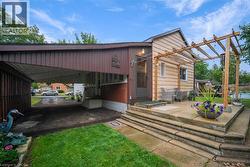 A Country Style Living in the City! Beautifully maintained home just minutes from all amenities and only one street from a Public School. Property highlights: 1. A breath taking, 60 x 212 ft. landscaped yard, a stunning 32 foot long wood porch perfect for relaxing! A spacious driveway fits 4 to 5 cars with a Carport. 2. Total of 3 backyard sheds 3. Large kitchen, with plenty of workspace and a generous window overlooking the backyard. 4. Elegant Dining room enhanced with classic wainscoting and natural light. 5. Bright Living room showcases a large picture window facing the front yard. 6. Basement: Large rooms, Pantry, 2 extra storage area, Electric fireplace. Inclusion: Riding lawn Mower. (2023) Home is lovingly cared for by its owners - move-in ready and full of charm! (id:27)