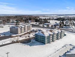 Enjoy maintenance-free, main-level living in this sunny & sophisticated Contemporary condo in the desirable Montgomery Heights area of East Royalty. This beautiful newer condo unit features a modern open floor plan, 2 bedrooms and 2 full baths. Spacious primary bedroom has a large walk-in closet and the ensuite bath has large vanity and walk-in shower with built-in seat. Second full bath has a tub and also has a large vanity. Bright kitchen features stainless steel appliances, plenty of cabinets and a solid-surface counter space, and a convenient breakfast bar for informal dining. Dining area opens to the light & bright living room that has a patio door leading to your private deck with glass railings. Separate large in-unit laundry & utility room for your convenience. Easy-care flooring throughout; efficient wall-mounted electric heaters keep you warm in Winter and the heat pump for heat & air conditioning keeps you cool during hot Summer days. This 4-story, secure building features an elevator for ease of move-in, intercom, fire sprinkler system, is small-pet friendly and the building and grounds are smoke-free. This condo is in a great location, close to all Charlottetown amenities including shopping, groceries, restaurants, airport, UPEI, soccer complex, numerous parks, schools, golf, services and other amenities, approximately 20-25 minutes to white sand dunes of North Shore beaches, and approximately 10 minutes to the heart of Downtown Charlottetown.