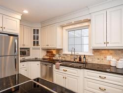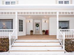 Your private estate—just minutes to Charlottetown—awaits at 21 Spruce Lane in Stratford. Set on 2.41 beautifully landscaped acres with underground services, this meticulously maintained property offers water views, mature trees, manicured lawns, and exceptional privacy, all less than four minutes to the Hillsborough Bridge and under ten minutes to downtown Charlottetown. A stamped concrete walkway leads to a welcoming wrap-around verandah, perfectly positioned to enjoy Island breezes, sunsets, and distant views of Charlottetown Harbour and city lights. The traditional centre-hall layout opens to an impressive marble-tiled foyer with a grand oak staircase, setting the tone for this thoughtfully designed home. The custom Joe Dunphy kitchen captures the morning sun and features ceiling-height cabinetry, granite countertops, an induction range, and heated tile floors, flowing into a bright dining nook surrounded by windows. The adjoining family room offers a cozy propane fireplace and expansive views across rolling lawns to the water beyond. A sunroom with skylights and custom bar cabinetry provides the perfect space for entertaining or relaxing year-round. Formal living and dining rooms each feature elegant details, including another propane fireplace and large picture windows showcasing harbour views. Main-floor conveniences include a powder room, laundry/mudroom, walk-in pantry, and direct access to the attached double garage. Upstairs, the spacious primary suite offers a private sitting area, walk-in closet, and a beautifully updated ensuite with tiled shower. Three additional bedrooms—each with walk-in closets—and a main bathroom with a deep soaker tub complete the upper level. The unfinished basement provides ample storage, a cold room, and workshop space, with efficient multi-zone heating systems in place. Outside, the property continues to impress with a paved double driveway, extensive lighting on timers, RV/boat parking pad, and a wired detached double garage