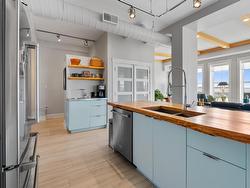 Welcome to a premier water view sanctuary in the heart of downtown Summerside. This stunning condo offers a rare opportunity to own a piece of history, situated in a character-rich 1920s building that was completely transformed into a modern residence just seven years ago. Located directly across from the picturesque 7 km boardwalk, this two-level home perfectly blends historic charm with high-end luxury. The main level is defined by soaring 10-foot ceilings and expansive windows that flood the space with natural light while providing beautiful views of the Summerside harbour and the vibrant energy of Water Street. The chef’s kitchen is a masterpiece of design, boasting professional-grade THOR appliances, a propane cooktop, a large pantry, a coffee nook with a sink, and a striking kitchen island topped with a live-edge maple counter and prep sink. Comfort is guaranteed year-round with fully ducted heating and air conditioning throughout. The lower level serves as a private retreat, featuring a spacious primary bedroom with sliding doors that lead to a cozy den. This versatile space includes its own propane fireplace and can easily be converted into a secondary bedroom if desired. The primary suite is further enhanced by a walk-in closet and a spa-like bathroom featuring a stand-up shower and a deep soaker tub. Practicality is woven into the design with a storage-rich hallway that provides access to the attached shared garage, where this unit enjoys a dedicated parking space. Outdoor living is equally impressive, with a private back deck featuring a direct propane line for effortless grilling, plus additional parking at the rear of the building. Situated just steps away from Summerside’s finest coffee shops, restaurants, and recreation centers, this property represents a lifestyle of convenience and coastal elegance that is rarely available on the market.