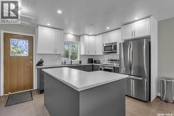 You won't want to miss this one! Located on a very quiet crescent close to school! This 4 bed and 2 bath home boasts just under 1,200 sq.ft. has a calm and rustic cabin vibe on the outside but a beautifully updated modern look on the inside. Heading in you are greeted by an entrance with space for coats and shoes. The spacious open concept living area has been significantly updated and has so much natural light! The large living room provides lots of space for entertaining. The new kitchen boasts a modern white finish, a great island, and a stainless steel appliance package. Down the hall we find 3 bedrooms on the main floor which is sure to be a hit for any family! With the primary bedroom being very spacious - as well we also find a large 4 piece bathroom! Heading downstairs you are greeted by an absolutely massive family room with a walk-out door to your backyard! There is also another large bedroom, a 4 second 4 piece bathroom, office nook and a spacious laundry/storage on this level. Heading outside we find a nice asphalt driveway that leads into your attached carport - perfect for the winter. Off the back of the home we find a tiered deck that leads to a patio - with the mature trees this area feels like you are camping in your own little oasis. So many updates over the last few years! If you are looking for easy living this may be it! Reach out today! (id:27)