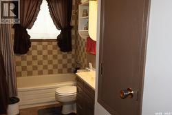 This upgraded home in Assiniboia is move-in ready, featuring vinyl siding, new asphalt shingles, and updated vinyl windows. The kitchen has new cabinetry, countertops, and appliances, while a vaulted ceiling adds openness to the living area. The vaulted ceiling has had Spray foam insulation added under the drywall. A great convenience are garden doors that open to a tiered deck in the fully fenced yard with grassy and garden areas. There are underground sprinklers at the front yard. The upper level offers three bedrooms and a full bath; the third level has a large family room with wet bar and backyard access. The basement includes a den, laundry with ample storage, utility room with mid-efficient furnace complete with central air, and a 3-piece bath. Convenient storage is available under the third level via crawl space. The location is close to a school bus stop. This home has been very well maintained and professionally upgraded. Don’t miss out on this one! You are going to love it! (id:27)