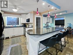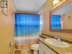 Welcome to this beautifully cared-for bungalow in the heart of Battleford, offering a bright and open layout that seamlessly connects the living room, dining area, and kitchen. The kitchen is both stylish and functional, featuring quartz countertops and a generous island perfect for everyday living or entertaining. With 2+1 bedrooms and three bathrooms, the home includes a spacious primary suite complete with a walk-in closet and a four-piece ensuite. The fully developed basement provides additional living space with a large family and games area, extra bedrooms, and a three-piece bathroom—ideal for growing families or guests. Spend quality time relaxing in the attached three-season sunroom or enjoy the backyard patios while taking in scenic river valley views. The back yard has an updated fence and covered gazebo, great for entertaining. Numerous updates have been completed over the years, including shingles, water heater, and central air conditioning in 2016, along with refreshed front-yard landscaping and underground sprinklers added in 2020. The fence was built in 2022 and gazebo 2023. The property also features a single attached garage, a fully fenced yard, and an excellent location. This home truly checks all the boxes—schedule your private showing today. (id:27)