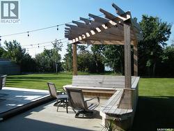 Welcome to a beautiful lakefront property – located at 26 Pape Drive – only a short commute to the city of Humboldt. Upon entry you will be met with a wall of windows from the living room overlooking the lake and front yard. The kitchen has a walk in pantry, quartz island and an abundance of counter space and cupboards. The open concept kitchen dining room provides a perfect place for family and friends to meet. Garden doors provide direct access off the dining room to the deck and well manicured yard. The main floor is complete with a large primary bedroom, with large walk in closet and 4 piece oversized ensuite. The remainder of the main floor features a spacious office with loads of storage, a laundry room again with ample storage, a large bedroom with walk in closet, a 4 piece bathroom and a large mudroom/storage room with direct access to the heated garage complete this main floor. The basement features 3 oversized bedrooms, 2 with walk in closets, a 4 piece bath, a family room, a large utility/storage room, a rec room as well as a second home office. This property located on 2 lots has a large front verandah as well as a back deck, to enjoy both sunrise and sunset. There is a large concrete pad as well as a pergola with extra seating. The yard features apple trees, a large garden space, large green space as well as a 3 car attached, 3 car detached and a 20 x 20 storage shed. There is lake access from the yard through an oversized alley to a perfect location for a dock. The property is heated by a natural gas boiler system, septic tank (approximately 3000 gallons) and is fed by public water line, central air and central vac are included. Please call your agent to come view this amazing property. All measurements to be verified by the Buyers. (id:27)