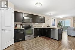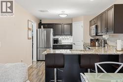 Welcome to Chaparral Ridge in Martensville, where comfort, great value, and low-maintenance living come together just minutes north of Saskatoon. This very well-kept bungalow-style condo offers a fantastic opportunity for first-time buyers, downsizers, or investors seeking an affordable home in a friendly, welcoming community. The open-concept living and dining area is bright and inviting, featuring direct access to the front patio—perfect for enjoying a quiet morning coffee or hosting family and friends during the holiday season. The spacious kitchen is both functional and stylish, complete with granite countertops, stainless steel appliances, ample cabinetry, and a pantry, making meal prep and entertaining effortless. Smart light switches throughout the home add modern convenience, allowing you to easily control lighting and enhance everyday comfort. Two generously sized bedrooms and a full bathroom are thoughtfully set away from the main living space, offering privacy and a peaceful retreat for quiet evenings in. Downstairs, the large unfinished basement provides endless potential—ideal for a future family room, home gym, play space, or guest area, allowing you to add value and personalize the home over time. Additional highlights include two electrified parking stalls, low condo fees, and a pet-friendly complex (with board approval). Lovingly maintained and offering excellent value, this home is truly move-in ready and waiting to welcome its next owners. Schedule your private showing today. (id:27)