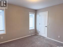 Welcome to the Chaparral Ridge in south Martensville! This upper level townhouse offers over 1,000 sqft of living space, vaulted ceilings and a bright and open layout! The kitchen is well-equipped with dark cabinets, corner pantry, peninsula seating and all appliances included! The dining and living room are spacious with room for entertaining, with a covered deck for your BBQ. Both bedrooms are a good size, the primary with a walk-in closet. A 4 pc bath and a laundry room complete the space. Additional storage in a storage space on the main level, 2 parking spaces and tons of visitor parking across from the unit, make this place extra convenient. Enjoy low condo fees in this family friendly complex, with pets permitted with restrictions. Steps from shops and restaurants and quick access to Costco and Saskatoon! Don't miss out on this home! (id:27)