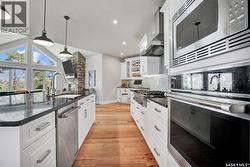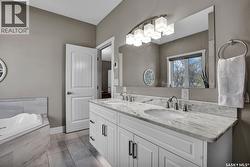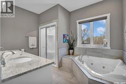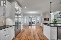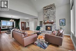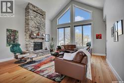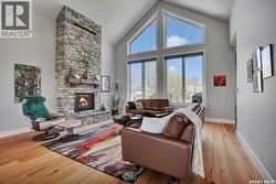 This beautiful, private acreage features 5 bedrooms, 4 bathrooms, a triple-car attached garage, and multiple outbuildings. Located just 22 minutes from Saskatoon, this acreage sits just outside the town of Delisle which features all amenities such as schools, grocery, gas, recreational activities and more. This 2020 built bungalow was customized with high building standards. The veranda at the front of the home provides entry into both the dining room and front hall. The spacious front entry gives access to the triple attached heated and insulated garage, half bathroom and main floor laundry room. The kitchen offers a large island, custom soft closet cabinets and drawers, glass tiled backsplash, quartzite countertops, large pantry and Jenn Air appliances. The kitchen is open to the family room with vaulted ceilings, a propane fireplace and large windows providing both a scenic view and an abundance of natural light. The sun room is fully insulated and can be used year round with a space heater or by leaving the doors open to the main living space. The great room boats 18ft ceilings and a second propane fireplace. Down the hall are three bedrooms including the master suite and the main bathroom. The master offers a walk in closet, five-piece ensuite with a water-air tub, separate stream shower, double sinks and access to the back deck. The outbuildings include the following: Quonset (42 X 70), Shop (20.5 X 33), Horse Stable, 24.5 X 14.5). The workshop is heated and insulated. The large Quonset is finished with a concrete floor and large double doors. The horse stable features two sliding doors and is perfect for horses. The home is finished with 50 year fiberglass shingles, commercial grade ROXUL insulation, triple pane windows, fiberglass doors, high efficient furnace and 100 gallon hot water tank with circulation system. There is a two stage system septic field with pump out and 1500 gallon – fiberglass tank. (id:27)