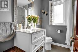This updated home is a charming blend of vintage allure & modern convenience. Its steeped in History. Nestled on a spacious lot along a picturesque tree-lined street, it offers the ideal location, steps away from 2 schools, downtown amenities, shopping venues & serene park. The home has undergone significant renovations both inside & out yet retains its original character w/stunning wood features. Prospective buyers are encouraged to consult their REALTOR® for a comprehensive list of updates, which include the replacement of sewer & water lines, as well as a fully renovated basement boasting impressive ceiling height. Upon entering, you're welcomed into a cozy enclosed sitting room that leads into the foyer. The living room exudes a calming atmosphere, thanks to its exquisite original hardwood flooring. French doors open into the dining area and kitchen, featuring a peninsula-style island, ideal for gatherings. From here, patio doors lead to a 2-tiered cedar deck, perfect for enjoying the beautifully landscaped yard. The main floor offers 2 bedrooms and a charming bath, while the 2nd floor houses 3 more bedrooms. The Primary suite is a retreat with its own sitting room & walk-in closet. A well-appointed 4pc. bath completes this floor. The lower level has been completely transformed w/new bracing, drywall, flooring & ceiling, creating an inviting family room & game area equipped w/a snack center w/sink. This floor also includes a bedroom (window does not meet fire code), an additional bath, laundry & ample storage. The mature landscaped yard is an entertainer's dream, offering tranquility & space for family & friends. Enjoying a 2-tiered Cedar Deck & Gazebo. Additional parking is available off the lane, accommodating RV/boat, alongside the front driveway. The inclusion of a single garage adds to the convenience of this remarkable property. CLICK ON THE MULTI MEDIA LINK FOR A FULL VISUAL TOUR and call today for your personal viewing to live more beautifully. (id:27)