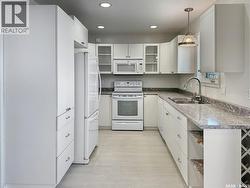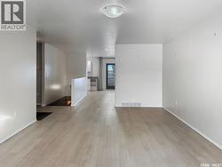 Welcome to 10907 D Amos Drive in North Battleford — a beautifully maintained home in a quiet 5-unit complex, built in 2009, offering spacious and comfortable living with thoughtful features throughout. With 1,124 sq. ft. on the main floor plus a fully developed basement, this property provides an impressive total living space. Step inside to an inviting open-concept living and dining area filled with natural light. The kitchen is nicely set off to the side with pantry space, white cabinetry with glass-door accents, and a convenient garburator hookup. Two French doors lead out to the private, lighted deck complete with a privacy wall and gas hookup for your BBQ, making it an ideal space for relaxing or entertaining. The fully fenced yard features a charming pergola-covered patio, providing the perfect extra space to host friends and family on warm summer evenings. The main floor includes a spacious primary bedroom with a walk-in closet and direct access to a large accessible bathroom featuring a walk-in shower, generous storage, and dual entry from both the bedroom and hallway. Downstairs, the fully finished basement offers a cozy family room, a guest bedroom, a full bathroom with tub and shower, and a laundry room with built-in storage. An additional multi-purpose room with wardrobes adds even more flexibility, perfect for a hobby space, home office, or workout area. Additional highlights include an attached double garage with shelving, keyless front entry, central air conditioning, air exchange system, central vacuum, underground sprinklers in both the front and back, and a fenced backyard with a covered pergola patio. All appliances and window coverings are included, along with stylish lighting upgrades and dimmer switches throughout. This move-in ready home offers exceptional space and functionality in a desirable location. Call for your personal tour today! (id:27)