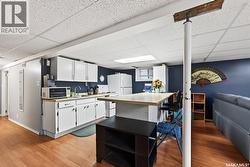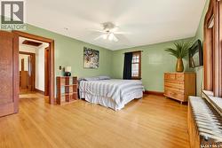 Welcome to this beautiful 1,675 sq. ft. well cared for character home, where charm and warmth meets thoughtful upgrades. Step into the generous entryway, a welcoming space for guests to shed coats and shoes before moving into the heart of this stunning residence. Original hardwood floors flow gracefully across both levels, complemented by bevelled glass doors, rich wood trim, and elegant archways that highlight the home’s craftsmanship. The main living room is anchored by a unique gas fireplace, crafted with reclaimed wood from the historic Lumsden elevator—a great conversation piece for cozy nights. Just beyond, the bright south-facing office offers an inspiring workspace and the perfect haven for your indoor greenery. Gatherings are effortless in the spacious dining room, ideal for holiday feasts or casual weekly entertaining. The kitchen features white cabinetry, stainless steel appliances, a double oven, and ample counter space. An eat-up breakfast bar invites conversation and connection while meals are prepared. Upstairs, the expansive primary bedroom includes a walk-in closet, while two additional bedrooms and a 4-piece bath with cast iron tub and updated tiles complete the second floor. The fully finished basement is a true bonus, warmed with in-floor radiant heat. With a kitchen area, family room, fourth bedroom, 4-piece bath, and laundry, it offers excellent potential as a roommate suite or guest retreat. Notable updates to the home include a durable metal roof and a high-quality Viessmann boiler , electric panel. Outdoors, the private backyard is perfect for summer relaxation on the low-maintenance deck. An oversized single garage adds even more value to this rare find. If you’re seeking a well-maintained character home close to downtown, this gem may be for you! (id:27)