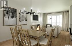 Welcome to 2808 Fleury Street in the heart of Arnheim Place. This brand new 1,723 square foot two storey is ideally located just steps from Candy Cane Park and minutes from downtown Regina. The main floor features a bright open layout with a stylish kitchen, spacious dining area, and a east facing living room anchored by a gas fireplace, perfect for both everyday living and entertaining. A convenient half bath completes the main level. Upstairs you will find three bedrooms, a full bathroom, second floor laundry, and a bonus room that works beautifully as a family room, office, or play space. The primary bedroom includes a walk in closet and a private ensuite with a custom tile shower. The basement is undeveloped and ready for your future plans. The 11x25 single attached garage is fully insulated with a gas line run for a future furnace, offering added comfort and flexibility. This is a great opportunity to own a thoughtfully designed new construction home in one of Regina’s most loved neighbourhoods. Reach out to book your private showing. (id:27)
