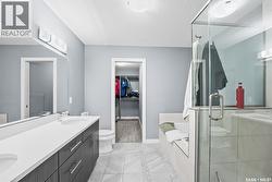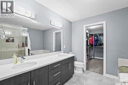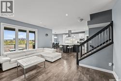 Welcome to 4357 Albulet Dr. This stunning Devereux built two-storey home is 1,970 square foot with the walk-out basement. This house has great street appeal with the stucco and stone combination. Perfectly positioned just steps from Fairchild park, Elementary school, green spaces, and walking paths, this property is ideal for families seeking comfort and convenience. The main floor showcases an impressive open-concept layout with beautiful laminate flooring flowing throughout the kitchen, dining room and living room. The kitchen features extensive cabinetry, elegant quartz countertops, a large island perfect for meal prep and casual dining, and a convenient walk-in pantry. The generous living room includes a custom built-in gas fireplace with stylish shelving, while abundant windows fill the space with natural light. The dining area opens to a covered balcony, where you can enjoy your evenings and weekends looking at the green space and the park on the other side of creek. Upstairs, a bright and versatile bonus room above the garage with plush carpeting offers versatility and adapts to your needs as a lounge, a play area, as a home office, or entertainment space. The master bedroom features carpeted floor, large windows, an ensuite with tile flooring, separate shower, corner soaker tub, and dual sinks. The master bedroom also leads to another big balcony. Two additional carpeted bedrooms share a full 4-piece bathroom. The fully developed walk-out basement expands your living space with a 4th bedroom, family room, an office room with barn door, and a 3-piece tiled bathroom. Additional storage and mechanical rooms provide excellent organization. The oversized double attached garage is partially insulated, offering exceptional storage. Contact your Realtor to schedule your private viewing today. (id:27)