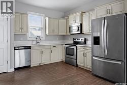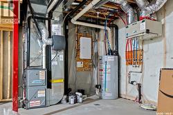 Discover modern elegance in this 2017-built 2-storey Semi-Detached (1/2 Duplex) nestled in Regina's vibrant Harbour Landing neighborhood, featuring 3 well-appointed bedrooms and 2 bathrooms—all just a short walking distance from Harbour Landing School. The open-concept main floor impresses with durable vinyl plank flooring, white cabinets, appliances including fridge, stove, washer, dryer, and built-in dishwasher, plus a convenient 2-pc bath, while upstairs delivers cozy carpeted retreats bathed in natural light from large windows, complete with one primary bedroom, two additional bedrooms, closet, reach-in storage, and a spa-like 4-pc bath featuring tub and shower combo. Premium comforts include central air conditioning, heat recovery unit, owned furnace, gas heater, and 2-car detached garage, fully fenced yard , modern vinyl siding, and asphalt shingle roof—ideal for first-time buyers or families seeking turnkey appeal near parks, schools, and shopping (id:27)
