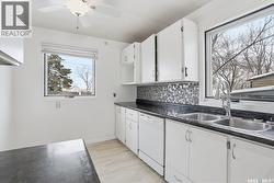 Welcome to 10 Connaught Place, a charming 903 sq ft bungalow tucked onto a quiet crescent in Saskatoon’s Kelsey/Woodlawn neighbourhood. Built in 1957, this classic home has been refreshed for comfortable everyday living. Mature trees frame the front yard and the low-maintenance exterior delivers great curb appeal. Step inside to a bright, welcoming main floor with a spacious front living room, updated flooring and a fresh, neutral palette that’s easy to personalize. A practical entry includes convenient closet storage to keep things tidy. The layout flows to the dining area and kitchen, where you’ll appreciate crisp white cabinetry, a contemporary tile backsplash, generous counterspace and a window that keeps the space sunny while you cook. Down the hall are two comfortable bedrooms and a full bathroom. The fully developed basement adds excellent bonus space with a large family/rec room which can be used as a third bedroom, a second bathroom, dedicated laundry area and plenty of storage—ideal for a home office, gym, play space or movie nights. With an open footprint, you can create separate zones for entertaining, guests and hobbies and still have room to add your own finishing touches. Outside, enjoy a private backyard with space to relax, garden and host friends. A deck area is perfect for summer BBQs, and there’s room for a firepit and play space. You’ll also appreciate an oversized storage shed, extra parking and alley access. Located close to schools, parks, shopping, transit routes nearby and offering quick access to downtown and commuter routes, this 3 bedroom, 2 bathroom property is a fantastic option for first-time buyers, young families or investors looking for a move-in ready home in an established area. Don’t miss it—book your showing today! (id:27)