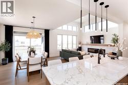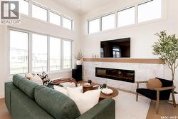 The "Fusion 25" is one of Pure Developments newest creations currently under construction is backing a park and will be ready for occupancy April 2026. This home is the same floorplan as their current showhome, with a few minor tweaks that Pure is known for to ensure each home is uniquely designed and finished. Pictures are of their current showhome and the design board renderings provide you with the finishings in this home. Features include a soaring vaulted ceiling in the living room with a large number of windoows, fireplace with accent wall and floating shelves, beautifully designed kitchen complete with a butler's pantry and custom cabinetry in the mudroom. The primary bedroom features a large walkin closet with ciustom shelving with cabinetry and a spectacular 5 piece ensuite. (id:27)