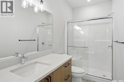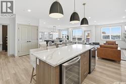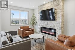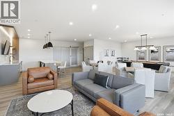Welcome to ‘RYSE by North Ridge' located in Saskatoon’s growing community of Brighton! RYSE is a modernized apartment style condominium complex offering 1 bedroom, 2 bedroom, and 2 bedroom + den options. You will immediately notice the welcoming nature of RYSE the moment you step into the warm and inviting front entrance. Unit 1304 (Skyline II layout) is a north west facing 1024 sq ft condo with 2 bedrooms, 2 bathrooms, a den, separate laundry room, galley style kitchen, and dining/living areas. The interior features high end designer finishes, fixtures, countertops, and flooring, all with quality built craftsmanship. A private partially covered balcony awaits complete with duradeck, glass railing, natural gas bbq outlet, and electrical outlet. Each condo unit comes with a parking stall located in the heated parkade as well as a convenient storage room. Exterior parking stalls may be available to purchase. Each unit also includes a kitchen and laundry appliance package and air conditioning. RYSE has an amenity room for you to visit and relax featuring a bar area, comfortable seating, pool table, bathroom, and an outdoor patio lounge. GST and PST included in purchase price with any rebates to builder. Sask Home Warranty Premium Coverage Plan. This prime location is within a few minute walk to grocery/shopping/restaurants/bus and several other amenities. Show home hours are Mon thru Thurs 5-8PM and Weekends 12-5PM. Call to view! (id:27)