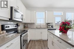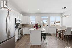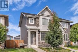 Set on tree-lined Centennial Drive in Kensington, this former show home has been well cared for and thoughtfully upgraded throughout. The two-storey layout offers 1,201 sq. ft. of comfortable, functional living with quartz countertops, durable exterior finishes, and a double detached garage with lane access. The kitchen is clean and practical — a quartz island with seating, tiled backsplash, pantry, stainless appliances, and white maple cabinetry — all open to the main living space. Upstairs, you’ll find three bedrooms and two full baths, including a primary with two closets and a private ensuite. The lower level is open and ready if you want more space, with roughed-in plumbing for a future bathroom. Outside, the yard is fully landscaped and fenced, with underground sprinklers, a concrete patio made for summer evenings, and a double garage. Close to schools, transit, and the amenities of Kensington and Blairmore. A polished, move-in-ready home that’s easy to settle into. (id:27)