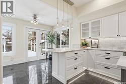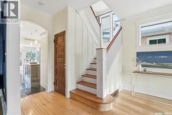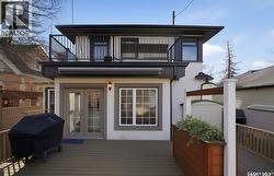 Don’t miss this INCREDIBLE character home in one of Saskatoon’s most desirable neighbourhoods! A stately family home with a fully developed basement with separate entry. This property exudes pride of ownership with charm and professional updates throughout. Enter into the main floor to find a welcoming sunroom and lrg foyer, living room with wood burning fireplace, and a formal dining with a bay window. At the heart of the home is a chef’s DREAM KITCHEN- spacious and beautifully appointed with quartz countertops, stainless appliances, and a sit-up eating area that opens onto a sitting room, overlooking a large deck and private yard. A 2-pc bath completes the main. Upstairs, you’ll find 3 bedrooms: a primary suite with an ensuite and a charming private deck of the master. Two additional lrg bedrooms and a newly renovated 3-piece bathroom complete 2nd flr. Large windows flood every room with natural light, highlighting the significant character. Extensive renovations and upgrades have been meticulously completed recently, blending heritage with modern class. The unique dev basement offers a modern living room, lounge and 1 bed layout with a sep entrance, 4-pc bath, 2 x laundry, kitchen, and a family room w/ gas fireplace — ideal for additional cash flow. The oversized, heated att garage includes a large attic storage area above. The front yard is low maintenance with a stamped concrete driveway providing parking 3 vehicles. The private backyard will impress w/manicured grounds: a two-tiered deck, garden boxes, artificial turf, curbing, and climbing vines. In total, there are three decks, including a covered front deck and the private balcony of the master. Upgrades include: furnace, hot water heater, shingles, garage, decks, kitchen, two bathrooms, basement development, many new windows, updated exterior, and driveway — the list goes on! This gem is ideally situated within walking distance to the river, downtown, U of S, and all hospitals, the location is unbeatable! (id:27)