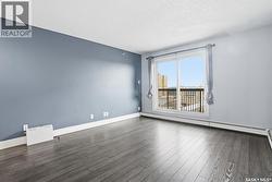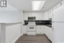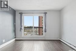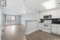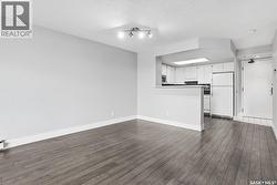 Welcome to unit #905 – 311 6th Avenue North, a 677 sq ft 9th floor condo located in Saskatoon’s Central Business District. Coming inside, you are met with a bright, open concept floor plan. Your kitchen features quartz countertops, fridge, stove, microwave and dishwasher, white painted cabinets, and marble breakfast bar great for additional seating. Open to your dinette, and family room. With sliding door access to your East facing balcony, with PVC siding, and beautiful views overlooking Kinsmen Park and the river. Your bedroom provides ample space with a closet with custom organizers and continued laminate flooring. Your 4-pc bath features tile flooring, tile surround tub, modern vanity, and stacking washer/dryer for convenient in-suite laundry. 1 underground parking stall is included. Complex contains a workout room, a sports court, convenience store, hair salon, dry sauna, and much more – making this a highly desired building! Do not miss out on this downtown opportunity! (id:27)