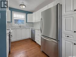 Welcome to 1110 Bothwell Drive in Swift Current, a thoughtfully updated bungalow in a highly convenient location near Swift Current Comprehensive High School and O.M. Irwin School (K–8). From the street, the home presents clean, low-maintenance appeal with stucco exterior, updated PVC windows, and a welcoming front approach. Inside, the main floor offers a bright dining space adjoining a functional galley kitchen featuring melamine cabinetry, updated countertops, backsplash, and a low-profile microwave/hood fan. A sunny, spacious front living room sits at the front of the house opening seamlessly into the kitchen and dining. Hardwood flooring carries through the kitchen, living room, hallway, and into the primary bedroom. The primary suite is a standout with a generous walk-in closet and a renovated 3-piece ensuite complete with a seated shower, updated vanity with engineered stone countertop, and new vinyl tile flooring. A second bedroom and an updated 4-piece main bath complete the main level. Downstairs, recent flooring updates enhance a versatile lower level that includes a large office with two closets, an inviting recreation room with plenty of space for games or a media setup, and a third bedroom with a newly installed PVC egress window. A renovated 3-piece bathroom offers convenient access with Jack-and-Jill style doors to both the rec room and bedroom. Outside, enjoy a fully fenced, 2 tiered backyard with a deck ideal for entertaining, plus access to the single garage and additional green space. Finished in modern paint colours, this home is move-in ready and well suited to a variety of lifestyles. call today for more information or to book your personal viewing. As per the Seller’s direction, all offers will be presented on 02/04/2026 12:07AM. (id:27)