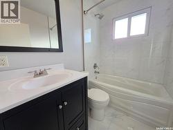 Affordability just got a new address – 1420 Chaplin St. E., Swift Current. Priced at just $238,000, this stylishly renovated 2+1-bedroom, 2-bathroom home proves you don’t need excess square footage to live comfortably or look good doing it. The smart 768 sq.ft. layout eliminates wasted hallways and maximizes every inch. The modern kitchen features sleek melamine cabinetry, stainless steel appliances, and flows seamlessly into a bright, welcoming living room. Both main-floor bedrooms offer comfortable proportions and a spa-worthy 4-piece bath with eye-catching tile and tub surround that truly shines. Downstairs, the rec room is dressed up with trendy barn doors leading to the laundry and utility area, a third bedroom, and a sharp 3-piece bathroom, making it ideal for guests, teens, or movie marathons. Outside, the 24x24 garage is a rare find with half dedicated to parking and half to a fully powered workshop with sub-panel and 220 plug, plus extra parking space for vehicles, toys, or that RV you use every weekend. Add in PVC windows, a 200-amp panel, a high-efficiency furnace, and numerous other updates, and this home delivers big value without the big price tag—proof that good things really do come in well-renovated packages. (id:27)