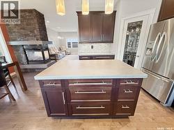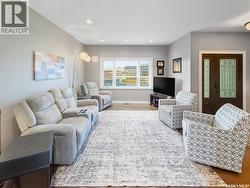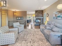Located in the highly sought-after Highland subdivision, where demand continues to outpace supply, this 2013-built bungalow is one buyers will move quickly on. Offering 1,414 sq ft, outstanding curb appeal welcomes you with Hardie board siding, stone accents, an exposed aggregate driveway, and a Wi-Fi enabled Celebrite exterior lighting package that adds stunning evening ambiance. Inside, an open-concept layout showcases engineered hardwood flooring and a front living room that flows seamlessly into the kitchen and dining area, anchored by a double-sided gas fireplace with a concrete mantle, creating warmth and visual interest throughout the main living space. The kitchen is filled with natural light from three west-facing windows plus a garden door and features concrete countertops and island, abundant cabinetry, corner pantry, under-cabinet lighting, and a full stainless steel appliance package. The dining area enjoys the second view of the fireplace and provides direct access to a covered deck, with steps down to a patio and fully fenced yard complete with a shed and two natural gas hookups—ideal for a BBQ and fire table. The main floor offers three bedrooms, including an oversized primary with walk-in closet and a spa-inspired ensuite featuring a jet tub and in-floor electric heat, plus a second four-piece bath. A main-floor laundry/mudroom leads directly to the heated double attached garage. The lower level is fully developed with a bright, oversized family room featuring large west-facing windows, a dry bar, two additional bedrooms, a refreshed three-piece bath, and a spacious utility/storage room with modern, energy-efficient mechanicals including a new hot water heater (September 2025). A true Highland gem in a low-inventory market—this home checks every box. As per the Seller’s direction, all offers will be presented on 02/17/2026 12:06AM. (id:27)