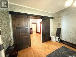 One Prairie Avenue! Conveniently located and waiting for you! Are you looking for a character home or an investment property? This one checks both boxes. This home is within walking distance of the downtown core, across from Crescent Point Place and the curling rink. Hardwood floors run throughout most of the main level of the home with original wood trim in excellent condition and you will find other unique and original treasures such as the antique metal vent covers, wooden banisters and large glass and wood foyer doors. A well-sized entry with stairway to the second level welcomes you into this home with south facing living room flooded by natural light. A spacious dining room connects the kitchen and living room perfect for large family gatherings anytime. You also have on the main floor a primary bedroom/office connected to the 4 pce bath. The kitchen is at the back of the home with ample cabinetry and access to a rear entrance with a small porch. Upstairs you will find laminate flooring throughout with a renovated bathroom that has a lovely generous tiled walk in shower. The basement level is unfinished but has ample storage room. The front entrance is enhanced by a partial wrap around veranda great for those warm summer nights. This home has seen great updates over the last 6 years including most windows, shingles on house and large storage building, the panel box and the upstairs flooring and bathroom. This property is very clean and tidy and you can start making revenue immediately. Don't sit on this one. Call for your private viewing right away! (id:27)