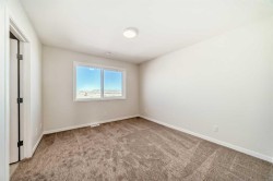 Welcome to the Heath, a thoughtfully designed 1,686 sq ft two-storey home that offers style, function, and space for the whole family. Situated on a sunshine lot with a garage-ready 20’ x 21’ concrete parking pad, this home ready for possession! This home comes with premium features like Hardie board siding, which is known for its durability and low maintenance. Hardie Board is resistant to fire, moisture, and pests, it’s a smart investment that protects your home while looking great for years to come. Inside, you'll find 3 bedrooms, 2.5 bathrooms, and a layout that blends open-concept living with modern finishes. The main floor showcases spindle railing, knockdown ceiling texture, and an upgraded rear L-shaped kitchen that is as functional as it is beautiful. Highlights include quartz countertops, pot lights, a chimney-style hood fan, built-in microwave, and an extra bank of drawers for added storage. The stunning two-tone cabinets elevate the design, while the open dining and living space are perfect for entertaining. The main floor even has a handy flex room perfect for a home office! Upstairs, the primary suite features a tile-to-ceiling shower surround in the ensuite, quartz counters, and a spacious layout. Two additional bedrooms and a full bathroom complete the upper level, along with convenient laundry access. This home also includes a separate side entrance and 9' foundation wall height—ideal for future basement development, it even has a wet bar rough-in! Additional features include an exterior gas line for a future BBQ—making it easy to enjoy sunny days outdoors and backyard gatherings. Located in a growing, family-friendly community with easy access to parks, schools, and amenities, this home combines value and quality in one exceptional package. Are you a FIRST TIME BUYER? You could be eligible for a GST rebate on this home! Speak to the sales team or your Realtor to find out more.