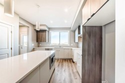 Welcome to 1054 Sawgrass Link NW, a beautifully crafted newly constructed home in Sawgrass Park by Hopewell Residential. Designed with everyday comfort and modern elegance in mind, this 3-bedroom, 2.5-bathroom home sits on a sunshine basement lot and includes a garage-ready concrete parking pad. From its bright, open layout to its stylish finishes and thoughtful upgrades, this home is the perfect blend of form and function. The main floor impresses with 9’ ceilings, Luxury Vinyl Plank flooring, and a well-appointed rear L-shaped kitchen featuring two-tone cabinetry, quartz countertops, a chimney-style hood fan, built-in microwave, upgraded backsplash, and an extra bank of drawers for enhanced storage. The spacious island is ideal for entertaining, while the painted spindle railing and knockdown ceilings add a touch of refinement. A convenient main floor pocket office offers the perfect spot for remote work or study, and the exterior gas line is ready for your future BBQ setup. Upstairs, a cozy loft space offers additional versatility — perfect as a reading nook, homework area, or play space. The primary suite features a tile-to-ceiling step-in shower with dual vanities, accompanied by two additional bedrooms and a full bathroom and laundry space to complete the upper level. The undeveloped basement provides endless opportunity for future expansion, complete with 9’ concrete walls, a wet bar rough-in, a bathroom rough-in, and a separate side entrance — allowing for flexible design and functionality as your needs evolve. Finished with durable and stylish Hardie Board siding, this home offers not only curb appeal but also long-lasting protection against the elements. Located in the welcoming community of Sawgrass Park, close to parks, pathways, and local amenities, this property is ready for immediate possession — move in and start your next chapter in style. Are you a FIRST TIME BUYER? You could be eligible for a GST rebate on this home! Speak to the sales team or your Realtor to find out more.