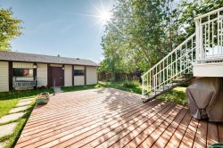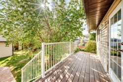 WELCOME to 108 Jensen Place—a beautiful bi-level home nestled in the desirable and established neighborhood in JENSEN ESTATES. With over 2,200 sq ft of developed living space, this residence is set on a spacious 65x130 corner lot, with MATURE FRUIT & BERRY TREES surrounding the property, offering exceptional privacy — a RARE FIND.The extra-large garage (29.4’ x 23.5’) offers ample space for multiple vehicles, generous storage, or a dedicated workshop area, making it perfect for car enthusiasts, hobbyists, or families seeking versatility.The main floor features a SPACIOUS kitchen and an inviting living area with a COZY FIREPLACE located on a feature wall, perfect for gatherings with friends and family. Lower Level offers a walk-up entry, an additional bedroom, 2 flex rooms, 3-piece bathroom and a large family room with a wet bar, ideal for entertaining guests or relaxing with family. This home is within walking distance to the TRI-SCHOOL AREA, close to Main Street amenities, and provides easy access to Highway 2—both north and southbound. Don’t miss your opportunity to own this exceptional property in Jensen Estates!