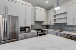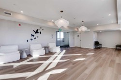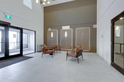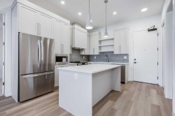 Perched on the top floor, this impressive B4 floor plan showcases 10-foot ceilings and a bright eastern-facing exposure, creating an airy, light-filled living space. The thoughtfully designed 2-bedroom, 2-bath plus den layout offers modern open-concept living, finished with quartz countertops throughout, luxury vinyl plank flooring, and contemporary recessed lighting. The primary suite features a walk-in closet and a private ensuite, while wall-unit air conditioning ensures year-round comfort.The Monarch delivers an exceptional amenity experience, including a fully equipped gym, yoga studio, boardroom, large residents’ lounge, party room with deck and BBQ, two rooftop decks, guest suite, and a dog wash station. Underground parade parking adds everyday convenience.Ideally located in the Cooper’s Crossing community, just steps from Coopers Promenade and close to schools, parks, and everyday amenities, with quick access to 8th Avenue, 40th Avenue, and Highway 2 for an easy commute to Calgary. Additional units are available, offering flexibility to suit a variety of lifestyles. A fantastic opportunity to enjoy low-maintenance, upscale living in one of Airdrie’s premier neighborhoods.