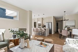 The beautiful Dawson model is a brand new home that features 2 living areas, 3 bedrooms, 2.5 bathrooms and nearly 2,300 square feet of developed living space + an undeveloped basement that awaits your imagination! Located in the heart of Chinook Gate and ideally situated on a large conventional lot with a south-facing backyard, this new home is perfect for a growing family. The double attached garage leads to an expansive mud room that has access to the front of the home and the large walk-through pantry/coffee bar that leads into the kitchen - adding to everyday convenience. The gourmet kitchen is complete with a cooktop, chimney hood fan, built-in wall oven & microwave, and features a central island with additional seating space. The kitchen overlooks the dining area and living room - making this the perfect family home or entertainment space! A central cantilevered gas fireplace in the main level great room is perfect for cozy winter nights. Double patio doors and windows on either side of the fireplace allow for the south-facing backyard sunshine to flow throughout the main living area all day long. The main level is complete with a large foyer, 2 pc powder room and two sets of double closets for ample storage. On the upper level, the bonus room is at the front of the home, overlooking the front street and providing the perfect tv space. The large primary suite is at the back of the home, overlooking the backyard, and is complete with walk-in closet and a 5 pc ensuite including a walk-in tiled shower, soaker tub, double sinks and a private water closet. Two more generous-sized bedrooms, each complete with their own walk-in closets, a full bathroom and laundry room complete the upper level. The undeveloped basement is a clean slate with bathroom rough-ins in place, making future development that much easier! Situated on a conventional lot (not a zero lot-line) that is over 3,700 ft2 in size, with a south-facing backyard, this beautiful new home is perfect for a growing family! This brand new home includes builder warranty + Alberta New Home Warranty - allowing you to purchase with peace of mind in the new community of Chinook Gate.