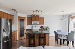 ** OPEN HOUSE SATURDAY, JAN 31 12:00-2:00 PM & SUNDAY FEB 1 12:00-2:00 PM** Welcome to 170 Sagewood Landing SW! This fully developed WALKOUT offers nearly 2,300 sq. ft. of living space on an impressive 5,124 sq. ft. pie lot at the end of a quiet cul-de-sac. With a sunny SE-facing backyard backing onto the pond and pathway system, there are no rear neighbours — just space, views, and direct access to the outdoors. As you enter, an open-to-above foyer sets the tone for the bright and open main floor. Large picture windows along the back of the home flood the space with natural light and frame tranquil views of the pond. The kitchen features newer S/S fridge and dishwasher, updated tile backsplash, great cabinet storage, a generous pantry, and an island that comfortably seats three — perfect for busy school mornings and weekend baking. Adjacent to the kitchen is a cozy dining nook, and a spacious living room. A main floor office adds versatility for working from home or can easily serve as a playroom or an additional bedroom. A convenient 2-pc bath completes the level. Upstairs, new luxury vinyl plank flooring leads you to a grand primary bedroom with a walk-in closet and a 3-piece ensuite with a large soaker tub. Two additional bedrooms and a full 4-pc bath finish out the upper level. The fully developed walkout basement level has 9' ceilings with large windows that offer great views of the expansive backyard and pond. The recreation/games room comes with a gas fireplace to keep you cozy during those winter months! You will also find an additional 3-piece bath, laundry room, and storage. Outside, the backyard is truly an extension of your living space. With room to run and play, plant a garden, add a hot tub, or simply soak in the views, the opportunities are endless! The double attached garage is fully insulated, drywalled, and painted with built-in shelving, and the additional storage shed is perfect for keeping your seasonal items stored. Families will love this location — tucked away on a private street yet close to multiple schools, playgrounds, athletic parks, golf, shops, and restaurants. Notable updates include roof (approx. 12 years old), hot water tank (Dec 2023), water softener (Mar 2023), cabinet hardware, lighting, and custom wooden closet shelving/organizers. A home that gives you space, lifestyle, and room to grow — welcome home!