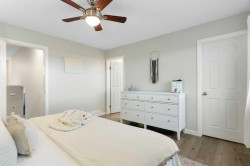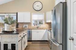 Hello, Gorgeous! Located in the established community of Willow Brook, this fully developed bi-level home offers 4 bedrooms, 3 bathrooms, and approximately 1201 SQFT of above-grade living space. The main level features a bright, open layout with vaulted ceilings, updated flooring in the entryway and stairs, and a welcoming living space enhanced by a new triple-pane window. The kitchen and dining areas connect seamlessly, making the home well suited for everyday living and entertaining.The primary bedroom, complete with a walk-in closet and ensuite, is privately located above the garage, while two additional bedrooms and a full bathroom are located on the main level. The fully developed basement includes a fourth bedroom, full bathroom, and a large recreation space offering excellent flexibility for guests, teens, or a home office.Significant recent upgrades include a new furnace, new air conditioner, new hot water tank, new water softener, new washer and dryer, new refrigerator, new garage door opener, updated lighting, and refreshed paint. Outdoor improvements include a newly rebuilt deck with privacy screen, upgraded railings and stairs, and new fencing on the south-facing side. The deck door has been upgraded to a triple-pane French door, improving both energy efficiency and indoor-outdoor flow.Conveniently located near schools, parks, pathways, shopping, and major commuter routes, this home offers a strong combination of comfort, functionality, and long-term value in a mature Airdrie neighbourhood.