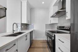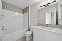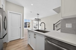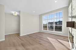 Welcome to 2198 Bayview Drive, the "Eli" - the largest floor plan option available by Genesis Builders Group. This beautifully finished NO CONDO FEE street-side townhome offers almost 1600 sq ft. of well-designed living space with 3 bedrooms, 2.5 bathrooms and a flex space on the 2nd floor, plus an unfinished basement with 9-foot ceilings, ready for your ideas. Large windows and soaring ceilings on the main floor let natural light fill the open-concept living space. The chef-inspired kitchen features sleek cabinetry and stone countertops and is well-equipped with stainless-steel appliances. The kitchen is tucked away yet still feels open and inviting, providing ample room for activities in the open-concept dining and living room. A floor-to-ceiling tiled fireplace is the living room's focal point. Complementing the main floor is a convenient half bath, storage, and access to the attached double garage, which is large enough for a truck. Venturing upstairs, you will find a spacious primary retreat with a spa-like ensuite featuring a shower, his-and-hers sinks, and a walk-in closet. Two additional bedrooms, a full bathroom, a flex room, a 4-piece bathroom, and laundry facilities complete the upper level. Enjoy spending time on your upper rooftop patio, situated above the garage, which is an excellent space for entertaining. Bayview is a beautiful community with parks, benches and pathways that meander throughout the community and along the canals. Kids and adults alike will enjoy the outdoor basketball nets, gym, amphitheatre, and tennis courts, which will convert into a skating rink in the winter. Come and see for yourself all the amenities the community has to offer! *RMS has been applied to the construction drawings provided by the builder. Taxes to be assessed*