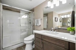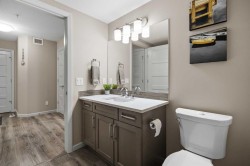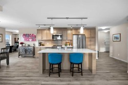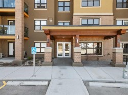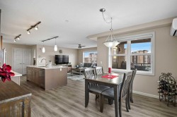 Welcome to #2310-10 Market Blvd! Airdrie's premier age restricted apartment complex, NEWLY age restricted to 55+. If you are looking to downsize in Airdrie, you will be hard pressed to find a building that compares to this one. This unit is a THIRD FLOOR, CORNER UNIT with SOUTHWEST exposure ensuring endless afternoon sun and INCREDIBLE NATURAL LIGHT throughout your home. Upon entering the unit, you are welcomed by a spacious foyer completed with a coat closet and an open, airy feel that immediately sets the tone for the home. Moving into the kitchen, it offers expansive, high-end cabinetry, granite countertops, a large island, beautiful light fixtures and stainless steel appliances. Designed for hosting, it opens seamlessly into the expansive living space with access to a spacious balcony, perfect for cozy evenings or morning coffee while enjoying the MOUNTAIN VIEWS. Just off your living space, you will appreciate a large, formal dining room that comfortably fits a six person table and is SURROUNDED by windows, a rare find in condo living. It is not every day that a unit like this hits the market, what is unique about it is that it offers TWO BEDS, 2 BATHROOMS + A LARGE DEN. The den is a versatile space ideal for a home office, exercise room, or additional storage. The PRIMARY bedroom is a true retreat, featuring a walk-through closet with built-in storage leading to a three-piece ensuite. This spa-like space includes a beautiful walk-in glass shower and a second vanity, ideal for getting ready in the morning. The second bedroom is equally spacious, offering two closets and direct access to the four-piece bathroom. You will also enjoy in suite laundry, beautiful vinyl flooring, remote controlled window coverings on the balcony doors, a garburator and many more upgrades. This unit offers TWO TITLED PARKING STALLS, one underground STEPS FROM THE ELEVATOR, the second one outdoors and a large assigned STORAGE LOCKER located down the hall on the same floor as your unit for convenient access. Stay comfortable in the summer months with your A/C wall unit and ceiling fan(s). The Chateaux features a beautifully landscaped courtyard with a gas fireplace and an amenity room available for private bookings where residents gather to host regular happy hours, social hours or just getting together to visit. There's also a secure underground workshop for those who enjoy woodworking. Located in Kings Heights, you’re within walking distance to Save-On-Foods, Shoppers Drug Mart, banks, salons, restaurants and more - covering all your grocery, shopping, and healthcare needs. This building is truly designed for mature ownership, peaceful living and a vibrant social community. CALL FOR A PRIVATE VIEWING TODAY!