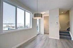 END UNIT, SIDE ENTRY TO BASEMENT. , IMMEDIATE POSSESSION, DOUBLE DETACHED GARAGE, DECK, FENCED AND LANDSCAPED, NO CONDO FEES. PICTURES ARE OF SAME MODEL, NOT SUBJECT PROPERTY. Welcome to the "St. Andrews" townhome, by Award winning, Master Builder, Douglas Homes Ltd. From the front covered porch, the entry opens onto the spacious great room with 9ft ceiling and gleaming hardwood floors throughout the main floor. The aspiring chef will appreciate the well planned "island" kitchen. From the upgraded 42 inch, soft close cabinets, to the gorgeous quartz countertops, everything is within easy reach. The sparkling stainless steel fridge, the glass top, self cleaning electric range, dishwasher, and over the range microwave/hoodfan are all just an arms length from the kitchen sink. Opposite side of the island, provides a convenient pantry, and desk with upper cabinet for all those recipe books you will collect. The spacious dining area features a large picture window looking out upon the back yard with room for the kids to play, with a rear entry door to the deck for those summer bbq's. Here also is a 2pc powder room for your guests convenience, and perhaps the kids hurried need. Upstairs includes 2 good sized secondary bedrooms, a 4pce bathroom with quartz vanity and tile floors, a convenient upstairs laundry, and a spacious primary bedroom with large upsized window and ensuite bath, with walk in shower, with glass front, tile floor and again a quartz vanity. The full basement provides rough in plumbing for a future bath, one window for future bedroom, and enough space remaining for a spacious future family room if you decide your family needs room to spread. All this in the desirable new subdivision Cobblestone Creek, with tennis courts, playgrounds, future school reserve, pathways and numerous green spaces, on the western edge of Airdrie, with wide open country side, and views to the west.Directions: