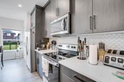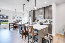 Welcome to this stunning semi-detached home with a front-attached single garage, nestled in the vibrant and family-friendly community of Midtown, Airdrie. Thoughtfully designed with both style and functionality in mind, this two-storey home is perfect for families or anyone seeking a modern, connected lifestyle.Step inside to a bright and contemporary kitchen overlooking the charming courtyard, complete with sleek countertops, stainless steel appliances, and a spacious centre island with a flush eating bar. The open-concept main floor flows effortlessly, creating the ideal space for everyday living and entertaining.Upstairs, you’ll find three spacious bedrooms, including a luxurious primary suite featuring a walk-in closet and a private ensuite. A convenient upstairs laundry and an additional full bathroom complete this level.An unfinished basement with its own side entrance, ready to be transformed into a space that fits your needs. Outside, enjoy a large backyard along with access to scenic walking paths, schools, shopping, and all of Airdrie’s best amenities just minutes away.