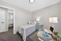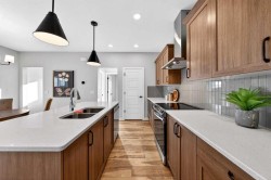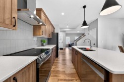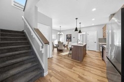 Better than new! This McKee-built 3-bedroom, 2.5-bath home eliminates the cost and hassle of post-build upgrades. Completed landscaping, fencing, deck on a sunny south facing backyard, window coverings, and a double detached garage. The garage features its own electrical panel and custom built storage. A bright and open main floor features vinyl plank flooring, a modern kitchen with quartz countertops, large island, pantry, and stainless steel appliances, plus a convenient main-floor den/office. Upstairs offers three spacious bedrooms and well-designed bathrooms. The unfinished basement provides excellent future development potential. Steps away from pickleball, beach volleyball and basketball courts, as well as the splash, skate and off leash parks of the 55-acre Chinook Winds recreation area. A quiet street and year-round recreation, makes this an exceptional home for families and outdoor enthusiasts.