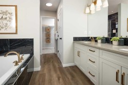 Here’s your chance to own a professionally designed showhome in the heart of Sawgrass Park, one of Airdrie’s most exciting new communities. Built by award-winning Hopewell Residential, this fully developed Grada model offers over 3,000 sq ft of beautifully finished living space and is available as a showhome leaseback opportunity. Purchase now and enjoy guaranteed rental income while the builder continues to showcase the home for 18 to 24 months. From the moment you arrive, this home stands out with its Hardie board siding, gemstone permanent exterior lighting, and professionally landscaped front and back yards. Inside, the main floor offers a flexible and functional layout, including a dedicated office that’s perfect for working from home. The open-concept kitchen, dining, and lifestyle areas are warm and welcoming, featuring a stylish electric fireplace, quartz countertops, full-height cabinetry, Whirlpool stainless steel appliances, and a spacious central island designed for gathering and entertaining. Upstairs, you'll find four generously sized bedrooms, a conveniently located laundry room, and an upper-floor bonus room with a beautiful tray ceiling that adds character and dimension to the space. The primary suite offers both comfort and luxury, with dual vanities, a soaker tub, a tiled shower with glass door, and a massive walk-in closet. The fully developed basement expands your living space with a large recreation area featuring a wet bar, a fifth bedroom, a second laundry room, and a full bathroom—perfect for guests or additional family members. Throughout the home, you'll find thoughtful upgrades including air conditioning, extra pot lights, knockdown ceilings, elegant spindle railings, triple-pane windows, and custom window coverings already installed. A rear deck with gas line makes summer entertaining a breeze, and the entire lot is fully landscaped from front to back. Situated in a quiet, family-oriented neighborhood near future schools, parks, and green spaces, this leaseback showhome at 4083 Sawgrass Street NW is a rare and rewarding opportunity—offering both immediate rental income and a beautifully finished future home.