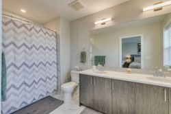 Fully upgraded and lovingly maintained, this home features NINE foot ceilings (main floor), quartz countertops throughout and a side entry to the fully developed basement which features a cozy family room with wet bar, a den/office, a bedroom, 4-piece bathroom and could be easily modified to make a fully self-contained suite (as always, a Suite would be subject to approvals and permitting by the municipality). You will love the open concept main floor plan. Upstairs, the master bedroom has a spacious ensuite, walk in closet and the additional bedrooms are big enough for your growing family. The home features a SOLAR energy system and CENTRAL A/C! The sunny SOUTH-facing deck and back yard rounds out this perfect home. Enjoy the convenience of your OVERSIZED detached double garage featuring HEAT AND COOLING and a separate panel. Located in Airdrie’s desirable South end, you’re just STEPS from Northcott Prairie School, parks, tennis and basketball courts, and an off-leash dog park. Quick access to Calgary makes commuting simple, while everything you need is right at your doorstep.