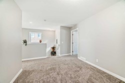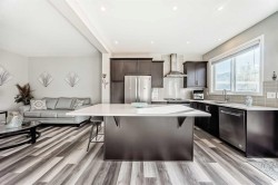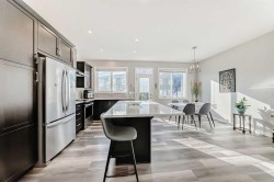 Beautifully maintained semi-detached home in the desirable community of Kings Heights, offering the perfect blend of style, comfort and convenience. Featuring an OPEN-CONCEPT MAIN FLOOR with a bright living room, spacious dining area, and stylish kitchen complete with quartz countertops, breakfast bar, espresso cabinetry and laminate flooring throughout. The dining area opens onto a LARGE WEST-FACING DECK, perfect for summer barbeques and evening sunsets.Upstairs you’ll find 3 generously sized bedrooms, including a private primary retreat with a 3-piece ensuite. A versatile bonus room adds space for movie nights or a home office, while the UPPER-LEVEL LAUNDRY and additional 4-piece bathroom make everyday living a breeze. The undeveloped basement awaits your personal touch.The backyard is your own private oasis. Enjoy a FULLY-FENCED, LANDSCAPED, LOW MAINTENANCE BACKYARD surrounded by trees. Additional features of the home include CUSTOM BLINDS THROUGHOUT, SOLAR PANELS, WATER SOFTENER, lots of windows and a SINGLE-ATTACHED GARAGE.King’s Heights is a vibrant, family-oriented neighborhood offering endless conveniences. The community offers pathways, playgrounds, dog parks and tranquil ponds. The recently completed 40 Avenue overpass provides direct access to Deerfoot Trail, making commuting easier than ever. Amenities like shopping, dining, and services in Airdrie as well as Cross Iron Mills & Costco are in close proximity. Walking distance to schools. Don’t miss this opportunity to get into a move-in ready home. Book your viewing appointment today!