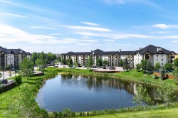 Unique chance! Experience the best of Downtown Airdrie living in this exceptional unit! Boasting 1,055 square feet of meticulously renovated space, this 2nd-floor condo offers an incredible opportunity. From the moment you step inside, you'll be captivated by the abundant natural light streaming through the expansive windows, creating an airy, open feel throughout the day. As one of the largest floor-plans in the entire development, this unit provides generous living and dining areas, seamlessly flowing into a stylish, functional kitchen. Home chefs will appreciate the upgraded wood cabinetry, sleek stainless appliances, and a convenient breakfast bar – perfect for entertaining or casual meals. This thoughtfully designed condo features two spacious bedrooms, including a primary suite with a walk-through closet and a private 3-piece ensuite. A second full 4-piece bathroom and a versatile den (ideal for a home office, gym, or quiet retreat) offer ultimate flexibility.The large living room with a gas fireplace leads to the spacious private balcony with gas barbecue hook ups and a fantastic view of the park! Enjoy the comfort of in-suite laundry and storage! The balcony includes a gas hook up for your BBQ and no building behind you for privacy. Adding to the convenience are two parking stalls: one titled, underground and heated, and another surface stall directly in front of the building. Located in a highly sought-after, well-managed complex with ample visitor parking, you'll enjoy quick access to walking paths, schools, shops, public transit, and major routes. This bright, inviting space is truly a must-see! Schedule your private showing today!