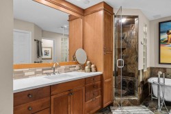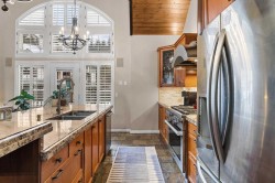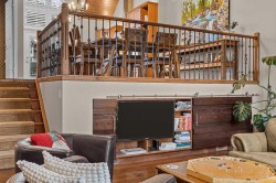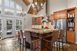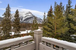 Luxurious End Unit Townhome in Exclusive Banff Neighbourhood - Tatanga Ridge I !This spacious, 2,716 sq.ft. alpine styled three bedroom plus den home stands in a class of its own – offering a level of finish, charm and functionality unmatched by anything currently on the market.Tastefully upgraded from top to bottom, the home welcomes you on the main level with a large sunny south facing balcony with massive windows that flood the interior with natural light. At the heart of this level is a dream kitchen with granite countertops, undermount sink, brick backsplash, oversized Miele gas range, custom hood fan, and stainless fridge with French doors. This level is accentuated with beautiful slate flooring and custom lighting and includes the dining area, home office, powder room and roomy foyer. Striking vaulted ceilings, clad in rich tongue and groove pine planks and accentuated with prominent timber beams guide you down to an airy and warm living room with a floor to ceiling river rock wood burning fireplace, a cozy alpine feature. Grand windows and a wrap around deck capture incredible views of Norquay and Cascade mountains. Gorgeous wide plank Douglas Fir flooring in the living room and primary bedroom create warmth and comfort. The tranquil primary bedroom comes complete with a slate accented gas fireplace with timber mantle, private deck, and full spa like ensuite bathroom with soaker tub and separate enclosed steam shower. The versatile bonus room/den complete with gas fireplace, custom bar made from west coast Maple with live edge and wine rack offers the perfect setting for movie nights, quiet reading or watching the big game. The lower level consists of two roomy bedrooms, a full bathroom, and separate laundry room. Lastly, for all your mountain toys there is a large attached double car garage featuring epoxy-coated flooring and storage for your year-round adventure gear. For added safety a fire smart all metal roof sprinkler system has been installed to protect against possible wildfire. This home has everything you are looking for in a mountain home and more!