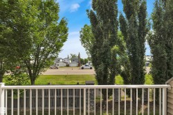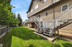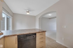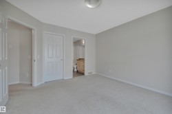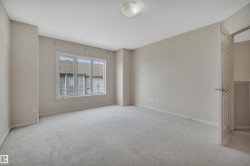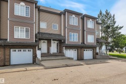 Welcome to Village de Mirabelle in Beaumont—perfect for homeowners seeking space, low maintenance living & quick access to shopping & EIA. This large townhouse features a unique double tandem garage with great storage & room for two vehicles. Perfect for Alberta winters. Lower level includes utility area & under stair storage. Main floor offers an open-concept kitchen, HUGE living room with big windows & dinette with sliding door to the back deck—no rear neighbours. Kitchen features black appliances, pantry, linoleum flooring & a window overlooking the yard. A 2-pce bath completes the main level. Upstairs, you'll find 2 large bedrooms, each with its own ensuite. The primary suite includes a walk-in closet & 4-pce bath. Hallway access to upper floor in-suite laundry adds convenience. Let the condo take care of grass cutting & snow removal. Welcoming for pet owners with minimal pet restrictions. Affordable & move-in ready—this home checks all the boxes for modern, low-maintenance living!