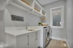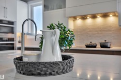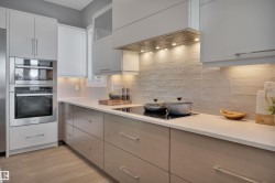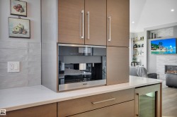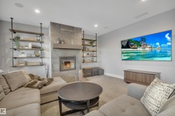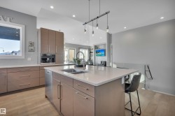 Exceptional custom walkout bungalow crafted by Ashton Custom Homes, ideally located in Beaumont’s prestigious Forest Heights community with a sun-filled SE-facing backyard backing onto a tranquil pond. This luxury residence offers an elegant open-concept design with soaring ceilings, expansive windows, an interior sound system, and refined finishes throughout. The chef-inspired kitchen is a true showpiece, featuring top-of-the-line Miele appliances, custom cabinetry, premium stone countertops, and a generous island—perfect for entertaining. The primary bedroom retreat includes a luxurious spa-style ensuite, walk-in closet, and serene views. The fully finished walkout basement offers two additional bedrooms, a large recreation area, in-floor heating, and direct access to the patio. Enjoy elevated outdoor living on the expansive deck overlooking the pond. Additional highlights include a heated triple attached garage, AC, furnace serviced in 2024 and a whole home filtration system.